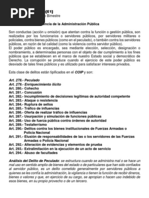 EL SUJETO ACTIVO EN EL DELITO DE PECULADO EN EL ECUADOR Y CRÍTICA AL TIPO PENAL EN EL COIP Monografía previa a la obtención del Título de Abogado de los Tribunales de Justicia de la República y Licenciado en Ciencias Políticas y Sociales. El COIP precisa que cometen peculado los servidores públicos que abusen se apropien distraigan o dispongan arbitrariamente de bienes dinero público o privado que estén en su poder en.